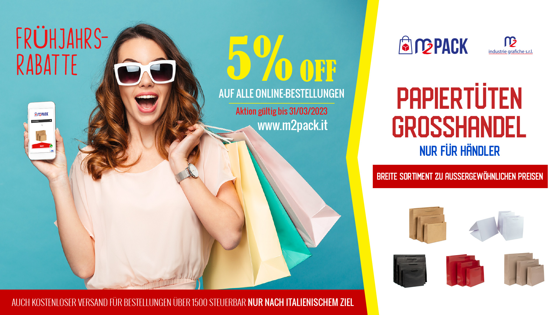 ANGEBOT GÜLTIG BIS ZUM 31.03.2023 FÜR EINKÄUFE, DIE NUR ÜBER DIE ONLINE-PLATTFORM WWW.M2PACK.IT TÄTIGEN