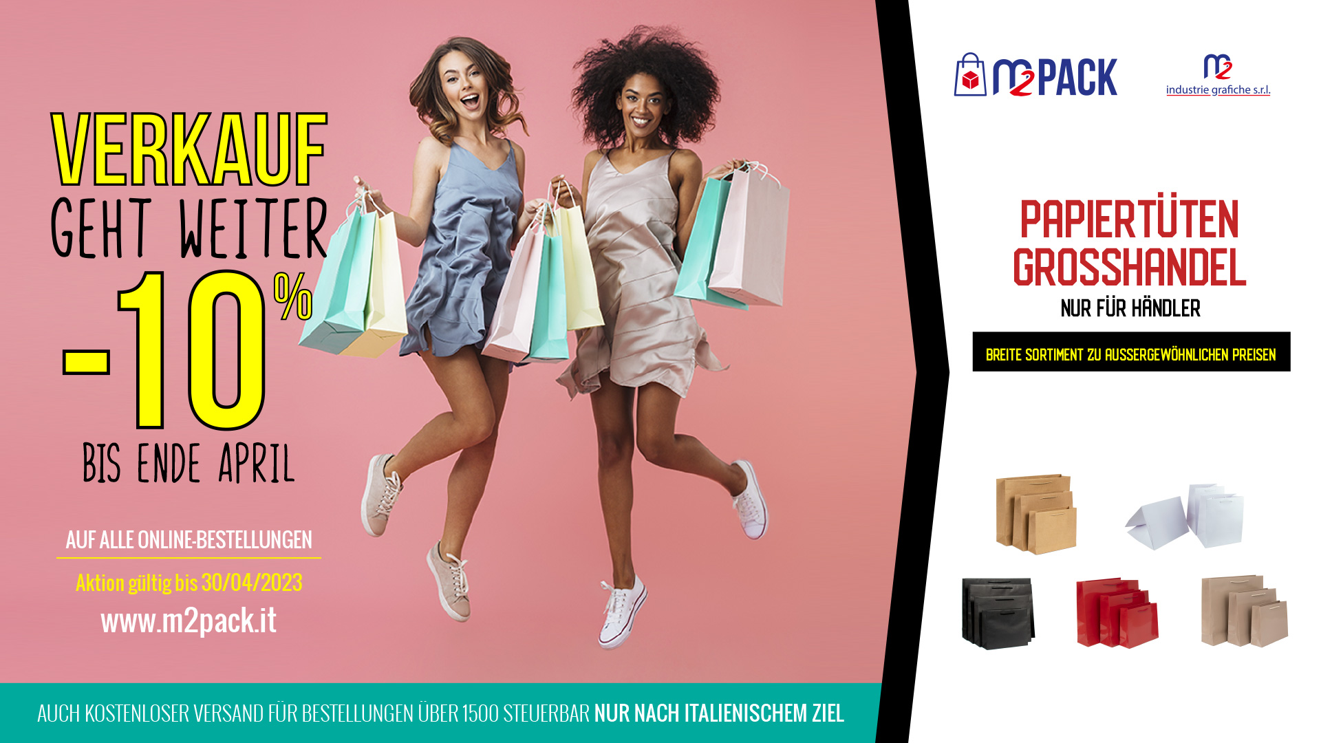 ANGEBOT GÜLTIG BIS ZUM 30.04.2023 FÜR EINKÄUFE, DIE NUR ÜBER DIE ONLINE-PLATTFORM WWW.M2PACK.IT TÄTIGEN
