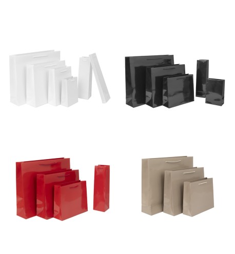 Das glänzende Mono-Patiniert Papier (coated paper) ist eine Papiersorte, die auf beiden Seiten mit einer sehr dünnen Patina beschichtet ist, die ihr das Aussehen einer glänzenden und polierten Oberfläche verleiht, die intensivere Farben und eine hohe Detailwiederaufgabe in den personalisierten Drucken erhöht. Das gestrichene Papier weist besondere Merkmale auf, die es sehr elegant und wertvoll machen. Es scheint auch sehr stark und robust zu sein. Ideal für Verpackung von Bekleidungsgeschäften, Juweliergeschäften, Haute Couture, Einzelhandelsgeschäften für Luxuswaren.