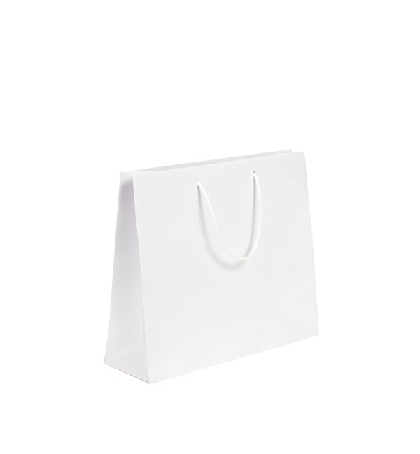La shopper monopatinata M2PACK è una borsa di carta rivestita di una sottilissima patina su entrambi i lati, che ne conferisce l'aspetto di una superficie levigata, esaltandone la resa cromatica e una maggiore nitidezza nelle stampe personalizzate. La carta patinata ha caratteristiche particolari che la rendono decisamente elegante e preziosa, molto resistente e robusta. Ideale per il packaging di negozi di abbigliamento, gioiellerie, alta moda, retail di lusso.