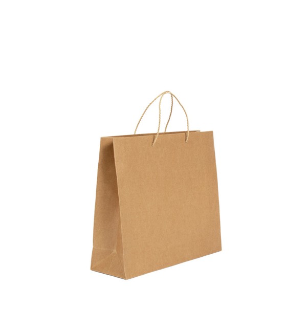 La shopper Kraft M2PACK è una borsa di carta molto resistente, ultraprotettiva e di alta qualità. Si tratta di una carta ricavata dalla cellulosa trattata al solfato, attraverso un processo che la rende particolarmente resistente e robusta. E' molto impiegata nel settore del confezionamento, dell'imballaggio e del packaging in generale.